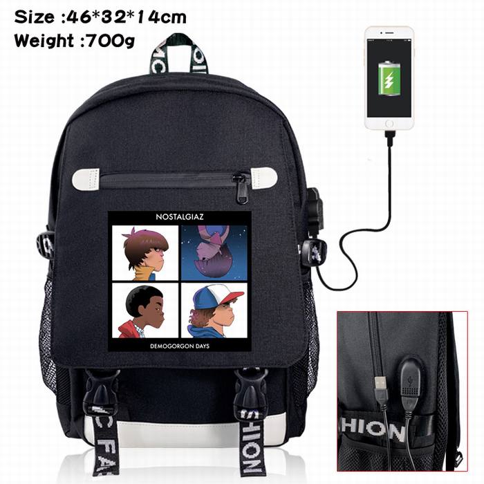 怪奇物语-15A 黑色 彩印数据线双肩背包