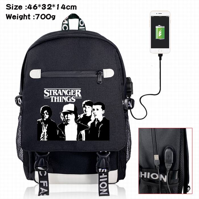 怪奇物语-16A 黑色 彩印数据线双肩背包