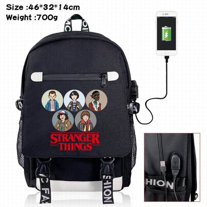 怪奇物语-8A 黑色 彩印数据线双肩背包