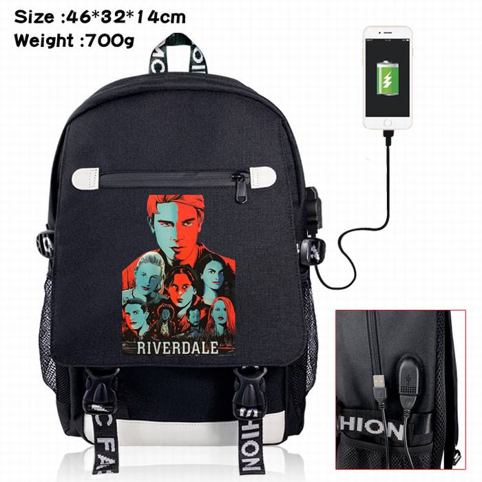 河谷镇-5A 黑色 彩印数据线双肩背包