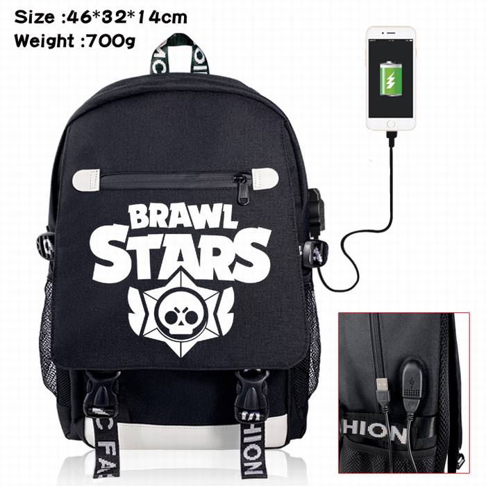荒野乱斗-18A 黑色 彩印数据线双肩背包