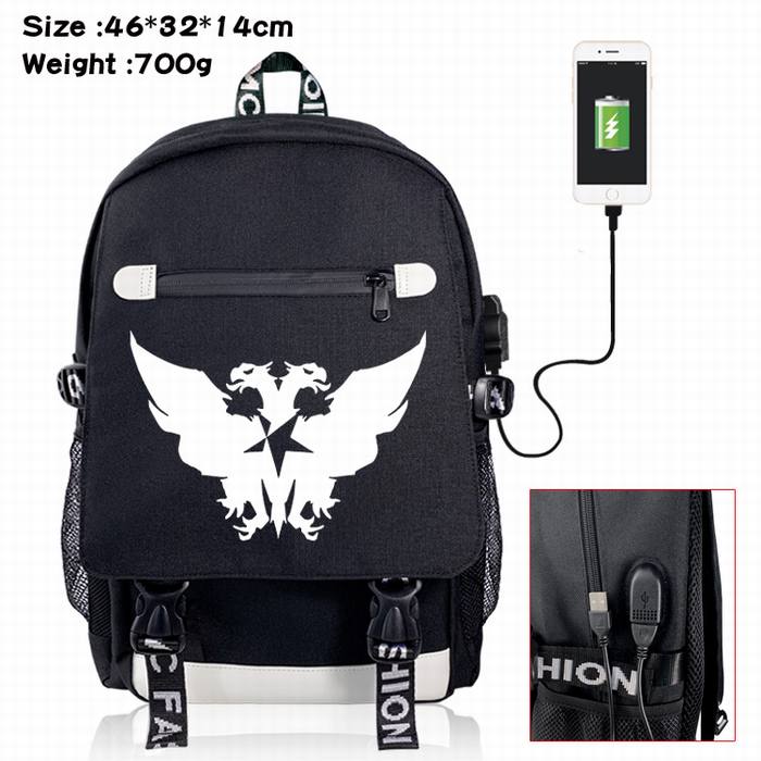 明日方舟-8A 黑色 彩印数据线双肩背包
