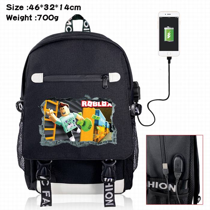 虚拟世界-3A 黑色 彩印数据线双肩背包