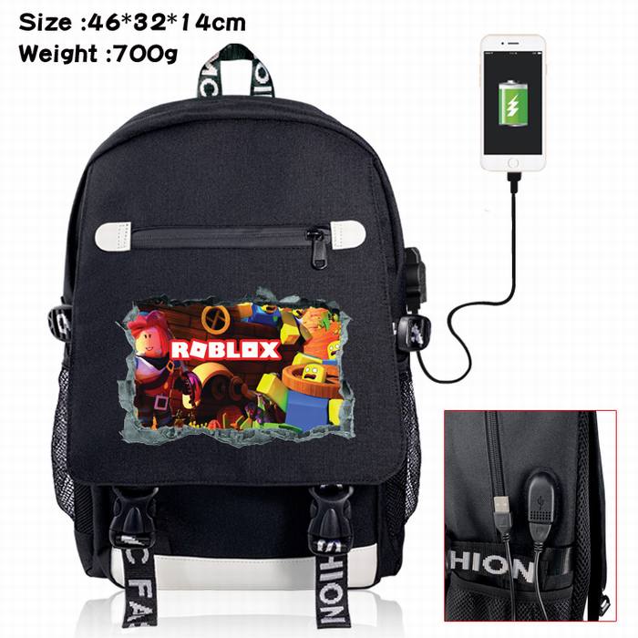 虚拟世界-6A 黑色 彩印数据线双肩背包