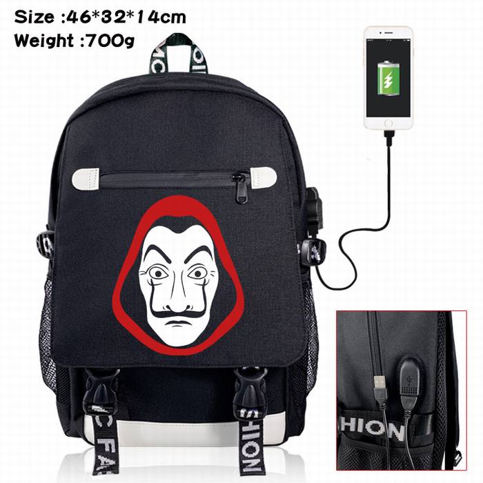 纸钞屋-1A 黑色 彩印数据线双肩背包