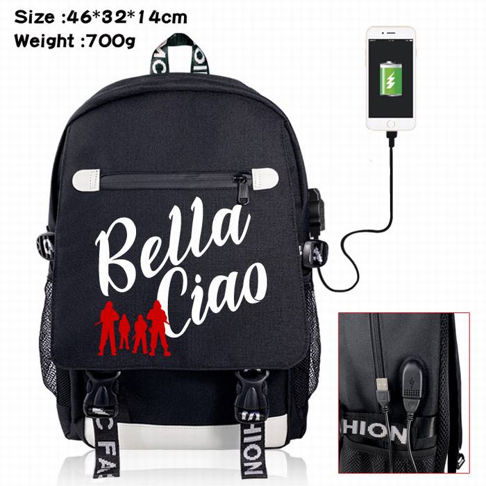 纸钞屋-14A 黑色 彩印数据线双肩背包