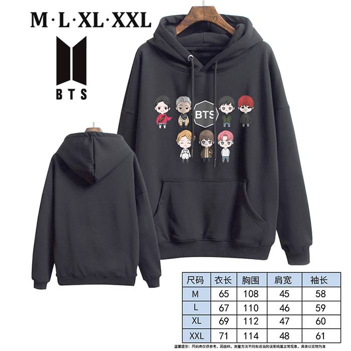 BTS-7A 防弹少年团 黑色 印花带帽加绒加厚卫衣 M L XL XXL