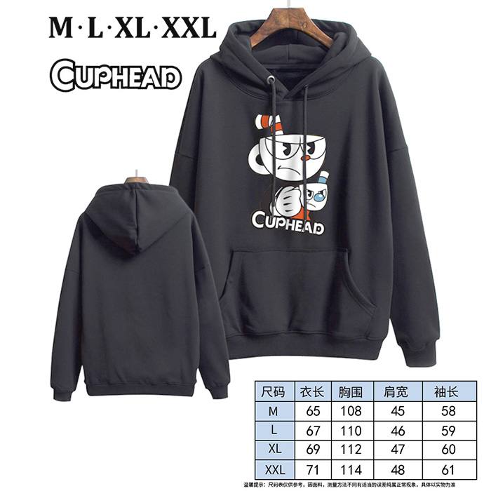 茶杯头-6 黑色 印花带帽加绒加厚卫衣 M L XL XXL