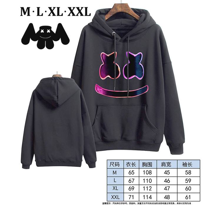 棉花糖-7 黑色 印花带帽加绒加厚卫衣 M L XL XXL