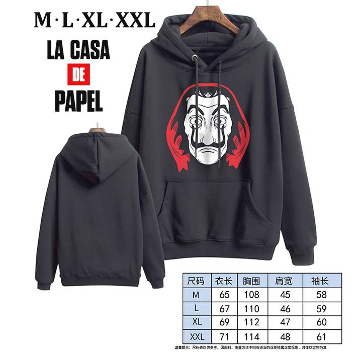 纸钞屋-16 黑色 印花带帽加绒加厚卫衣 M L XL XXL