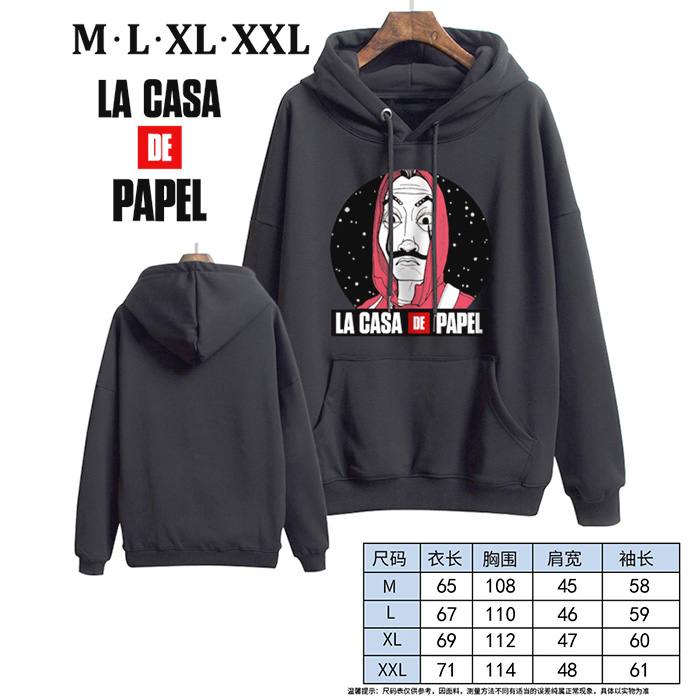 纸钞屋-7 黑色 印花带帽加绒加厚卫衣 M L XL XXL