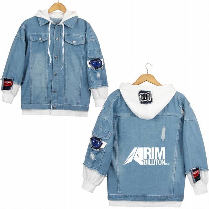 明日方舟-11 雷姆必拓-浅色 假两件牛仔外套连帽夹克卫衣(白印花)S M L XL 2XL 3XL