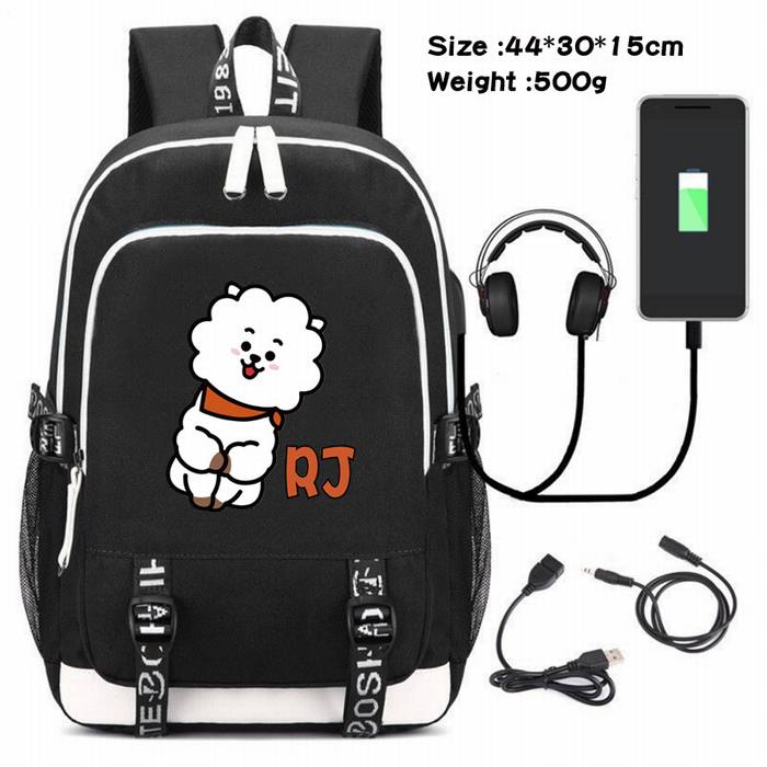 bts-002 防弹少年团 动漫USB充电双肩包数据线背包(双线接口)