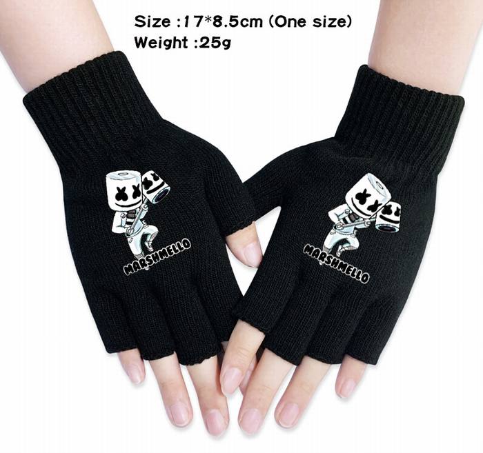 棉花糖-9A 黑色 动漫针织半指手套