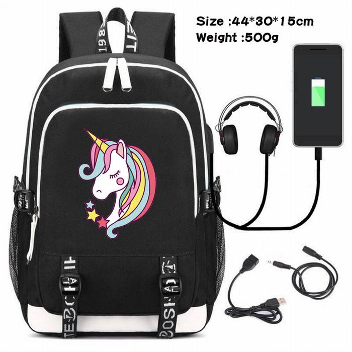 独角兽-082 动漫USB充电双肩包数据线背包(双线接口)