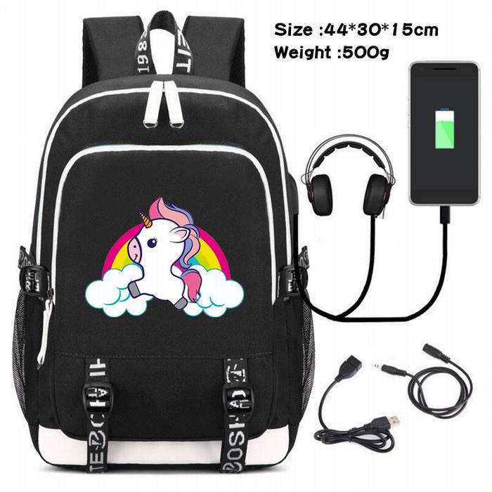 独角兽-083 动漫USB充电双肩包数据线背包(双线接口)