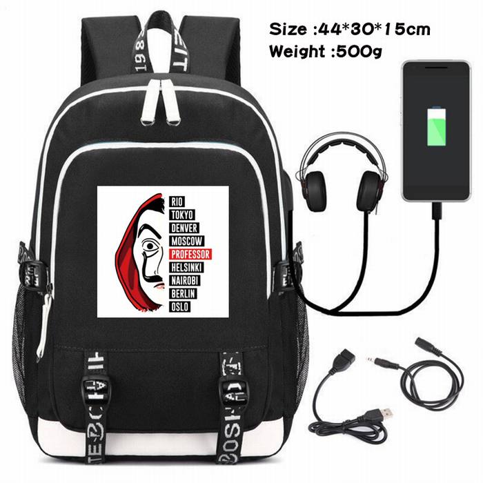 纸钞屋-237 动漫USB充电双肩包数据线背包(双线接口)