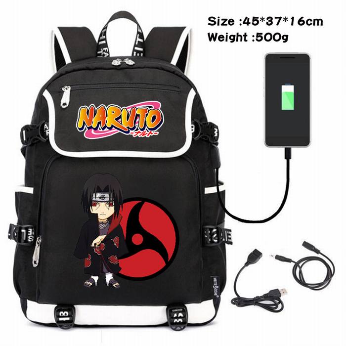 火影忍者-149 动漫600D防水帆布双肩包USB充电数据线背包