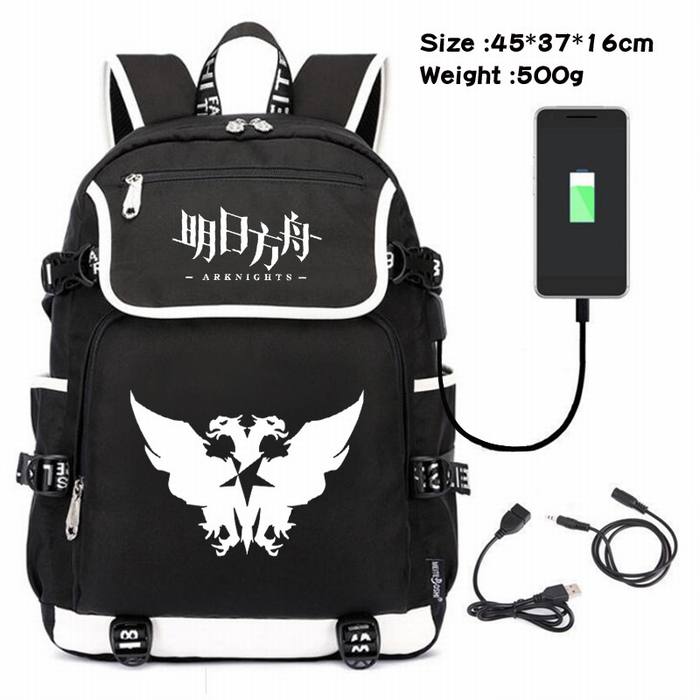 明日方舟-167 动漫600D防水帆布双肩包USB充电数据线背包