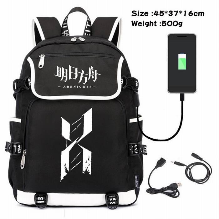 明日方舟-169 动漫600D防水帆布双肩包USB充电数据线背包