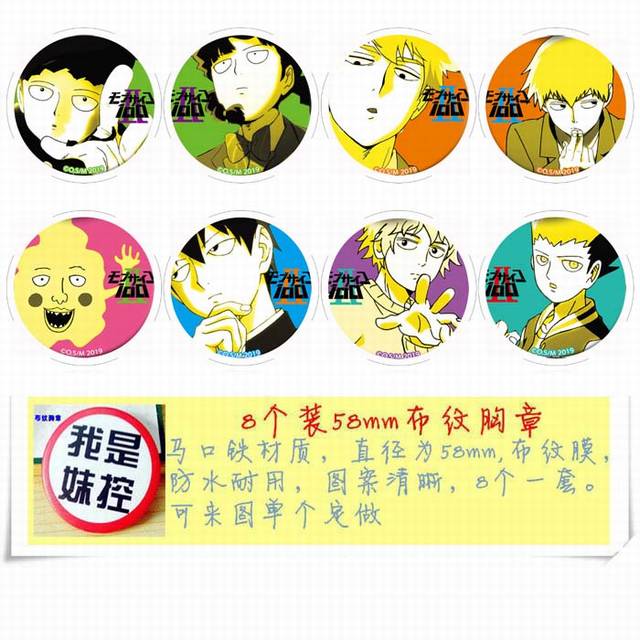 灵能百分百路人超能100 动漫马口铁徽章胸章圆形布纹胸针 8款一套 58MM