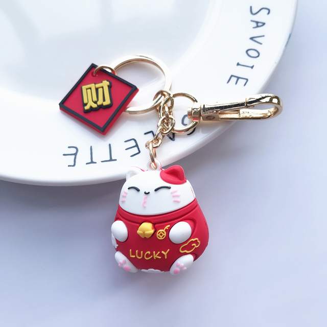 卡通可爱招财猫 红色 软胶钥匙扣挂件挂饰 5个起批