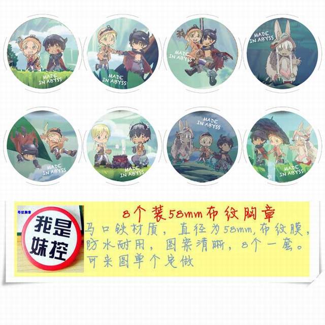 来自深渊-A款 动漫马口铁徽章胸章圆形布纹胸针 8款一套 58MM
