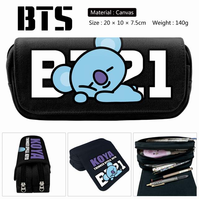 BTS-防弹少年团 BT21-考拉 动漫双层多功能大容量帆布学生笔袋文具盒钱包 20X10X7.5CM 140G