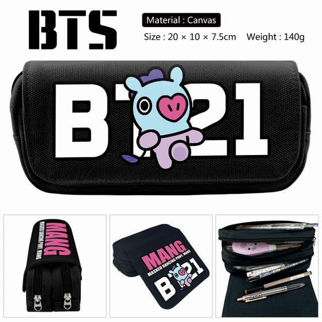 BTS-防弹少年团 BT21-小马 动漫双层多功能大容量帆布学生笔袋文具盒钱包 20X10X7.5CM 140G