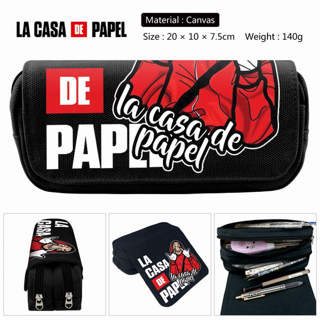 纸钞屋 英文标志 动漫双层多功能大容量帆布学生笔袋文具盒钱包 20X10X7.5CM 140G