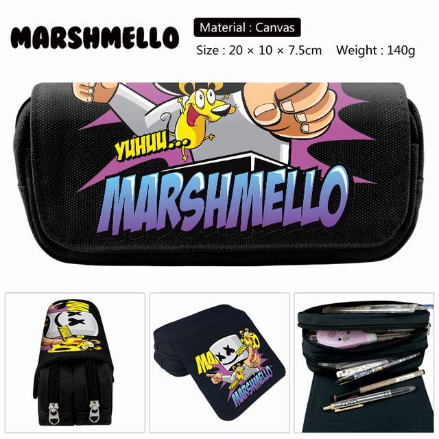 棉花糖 英文款 动漫双层多功能大容量帆布学生笔袋文具盒钱包 20X10X7.5CM 140G