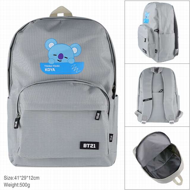BTS-防弹少年团 灰色 BT21考拉 拉链防水料双肩包背包书包 41X29X12CM 500G