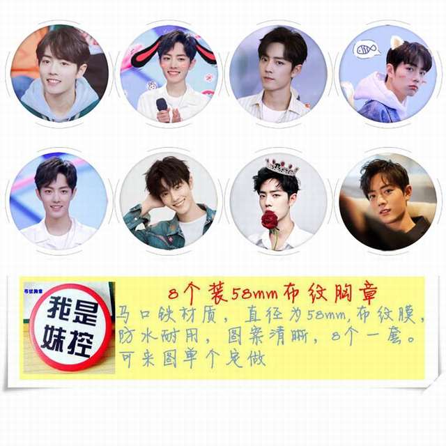 肖战 动漫马口铁徽章胸章圆形布纹胸针 8款一套 58MM