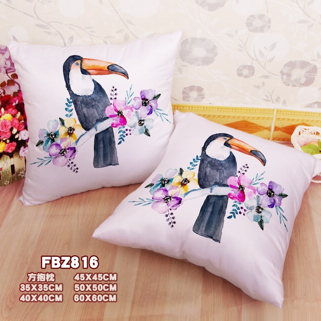 FBZ816-啄木鸟 动物方形通用双面全彩抱枕靠垫 45X45CM