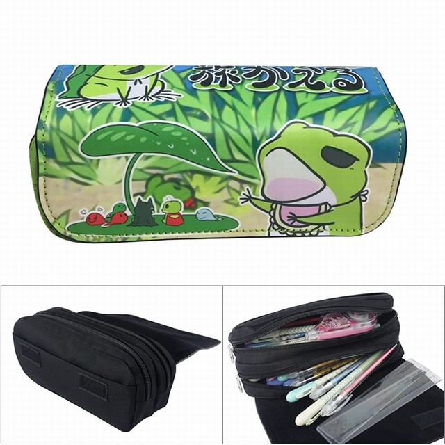 旅行青蛙 张口款 动漫双层多功能大容量帆布学生笔袋文具盒钱包 20X9X6.5CM 100G
