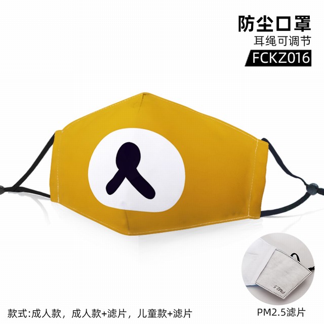 FCKZ016-轻松熊表情动漫彩印防尘口罩开口加滤片PM2.5(可选成人或儿童款)5个起批