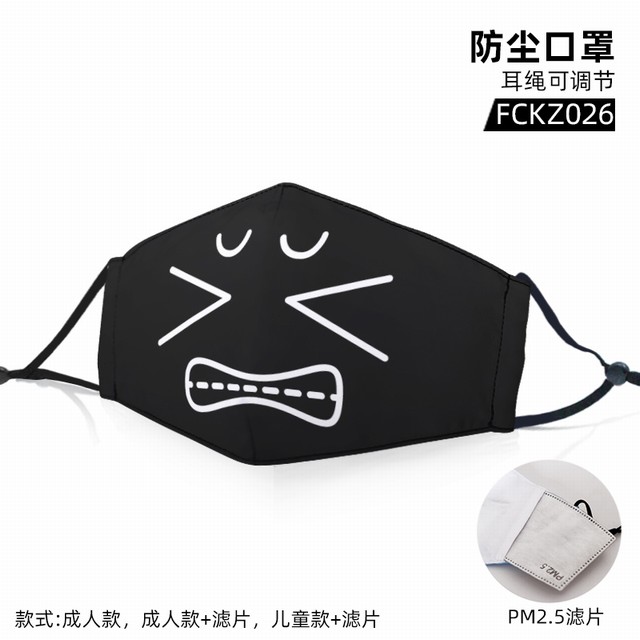 FCKZ026-表情彩印防尘口罩开口加滤片PM2.5(可选成人或儿童款)5个起批
