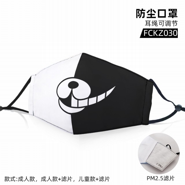 FCKZ030-弹丸论破黑白熊动漫彩印防尘口罩开口加滤片PM2.5(可选成人或儿童款)5个起批