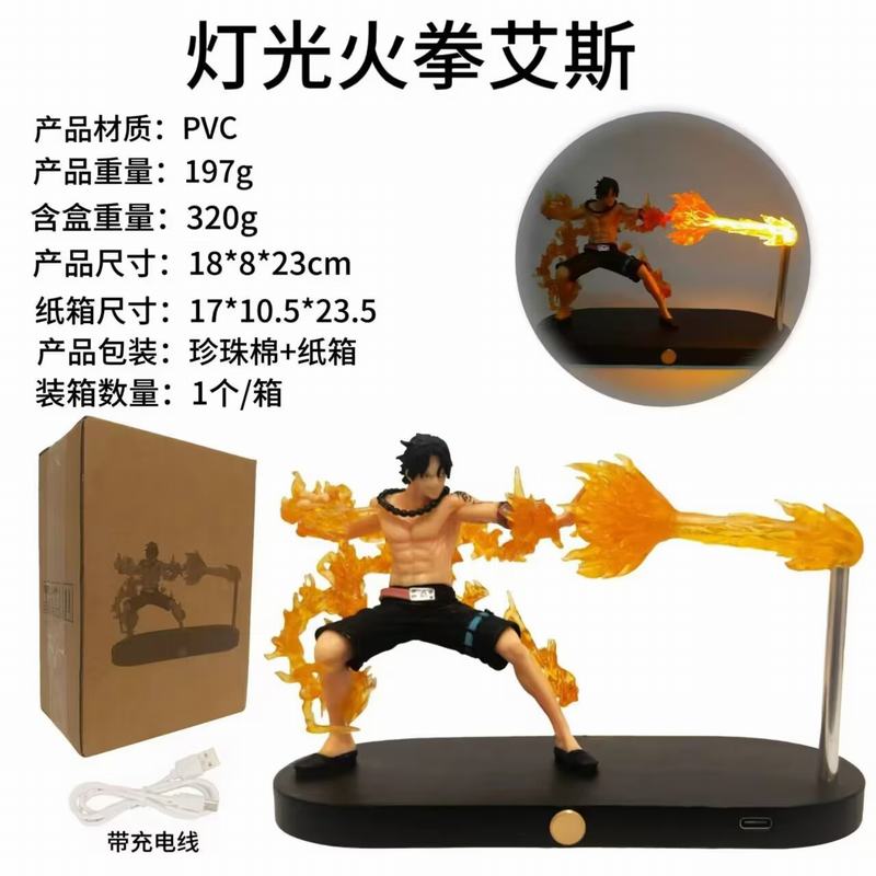海贼王 灯光 火拳艾斯 盒装手办 高约18cm
