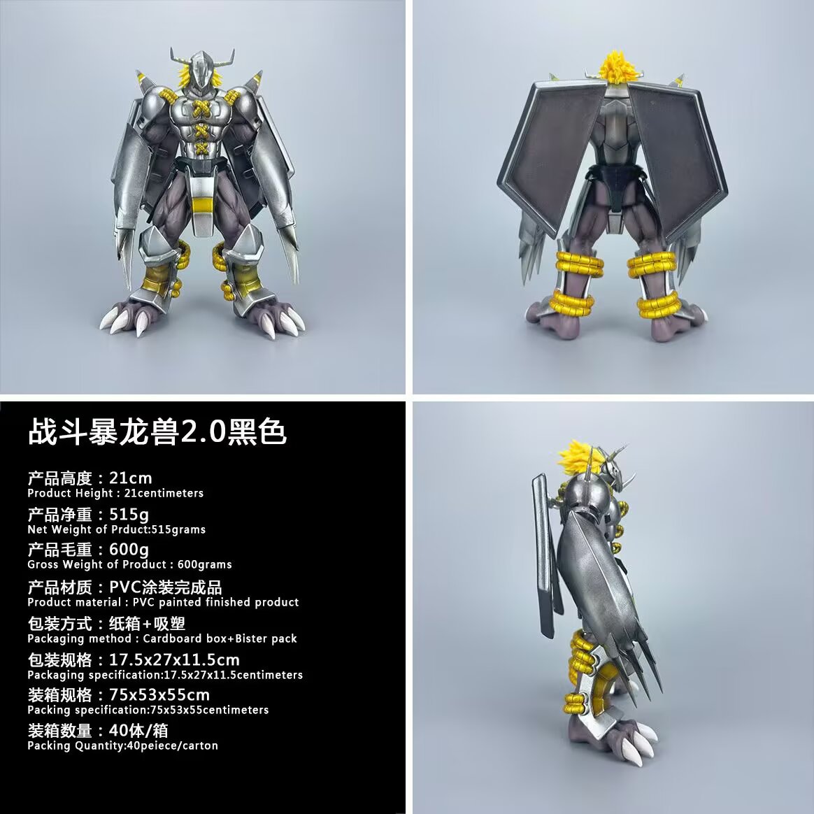 数码宝贝 战斗暴龙兽 2.0 黑色 盒装手办 高约21cm 一箱40个