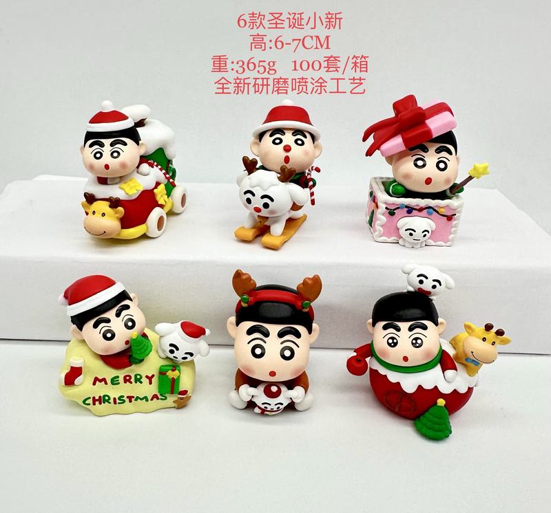 商品名称: 6款一套 蜡笔小新 圣诞小新 袋装手办 高6-7cm 一箱100套