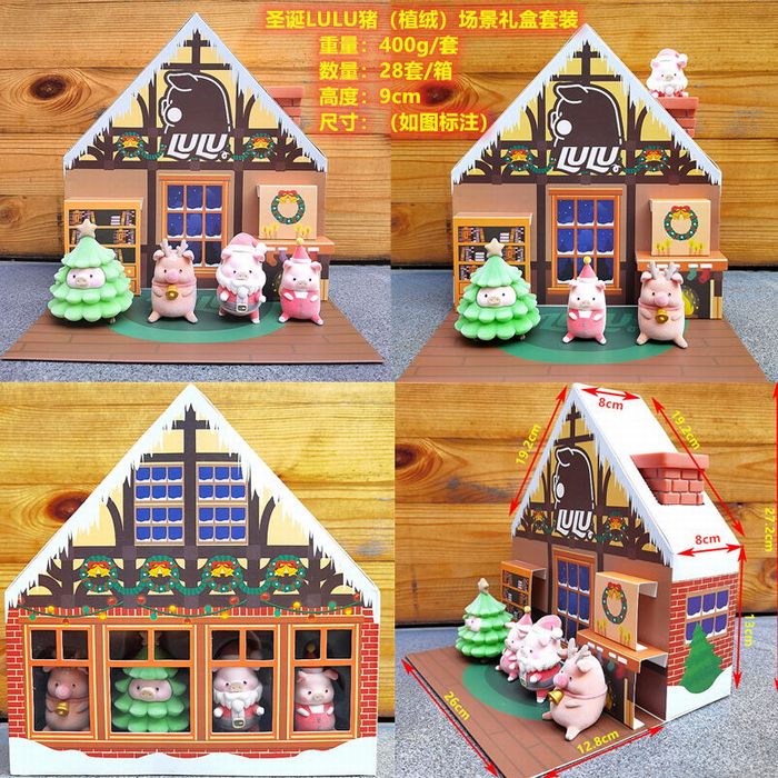 商品名称: 4款圣诞LULU猪(植绒)高档礼品盒套装 盒装手办 高9cm 一箱28套
