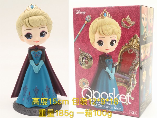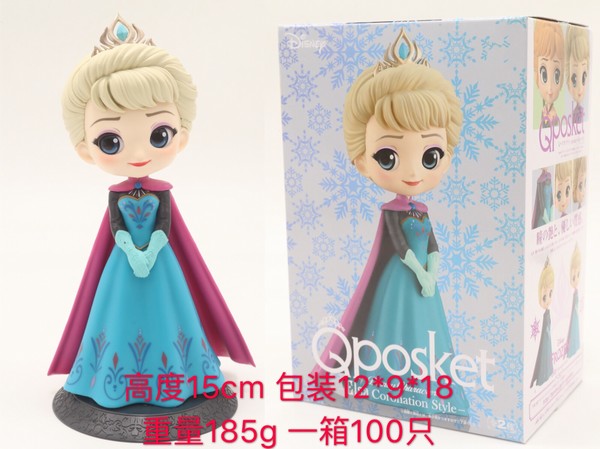 QPOSKET 冰雪奇缘 艾莎 蓝色裙子 美少女公主 盒装手办摆件模型15CM 一箱100个 180G 12X9X18CM