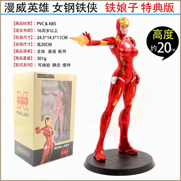漫威英雄 女钢铁侠 铁娘子 普通版 盒装手办摆件模型 20cm 291g