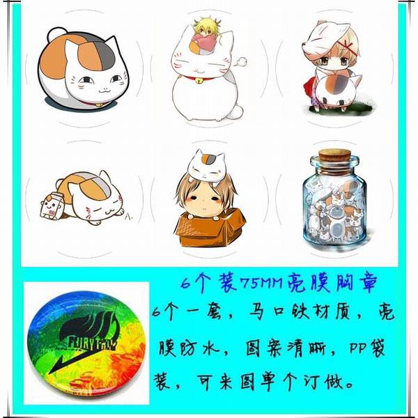 夏目友人帐 动漫马口铁亮膜徽章胸章圆形布纹胸针 6款一套 75MM
