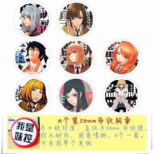 监狱学园 动漫马口铁徽章胸章圆形布纹胸针 8款一套 58MM