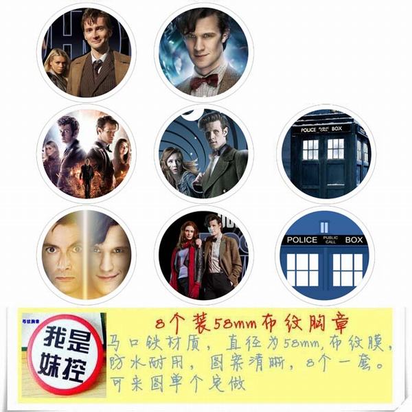 魄罗 动漫马口铁徽章胸章圆形布纹胸针 8款一套 58MM