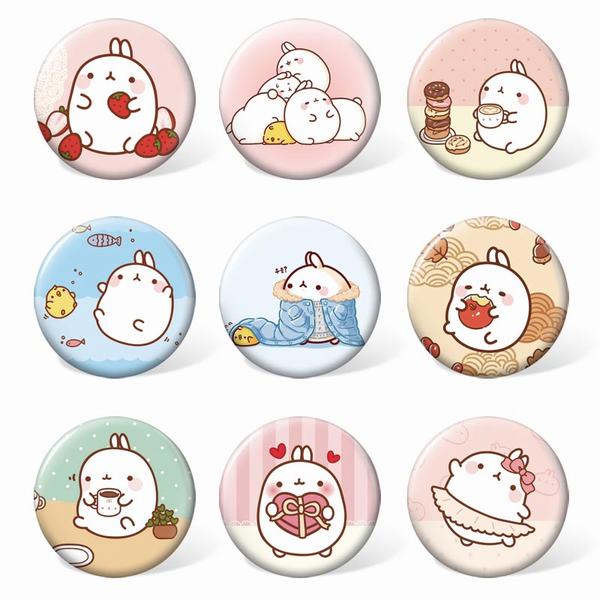 萌浪兔-A款随机9款出圆形布纹胸章胸针徽章58MM