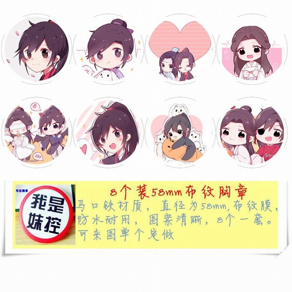 魔道祖师G款 动漫马口铁徽章胸章圆形布纹胸针 8款一套 58MM