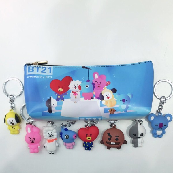 BTS 防弹少年团 BT21 8款公仔钥匙扣挂件加笔袋 套装出